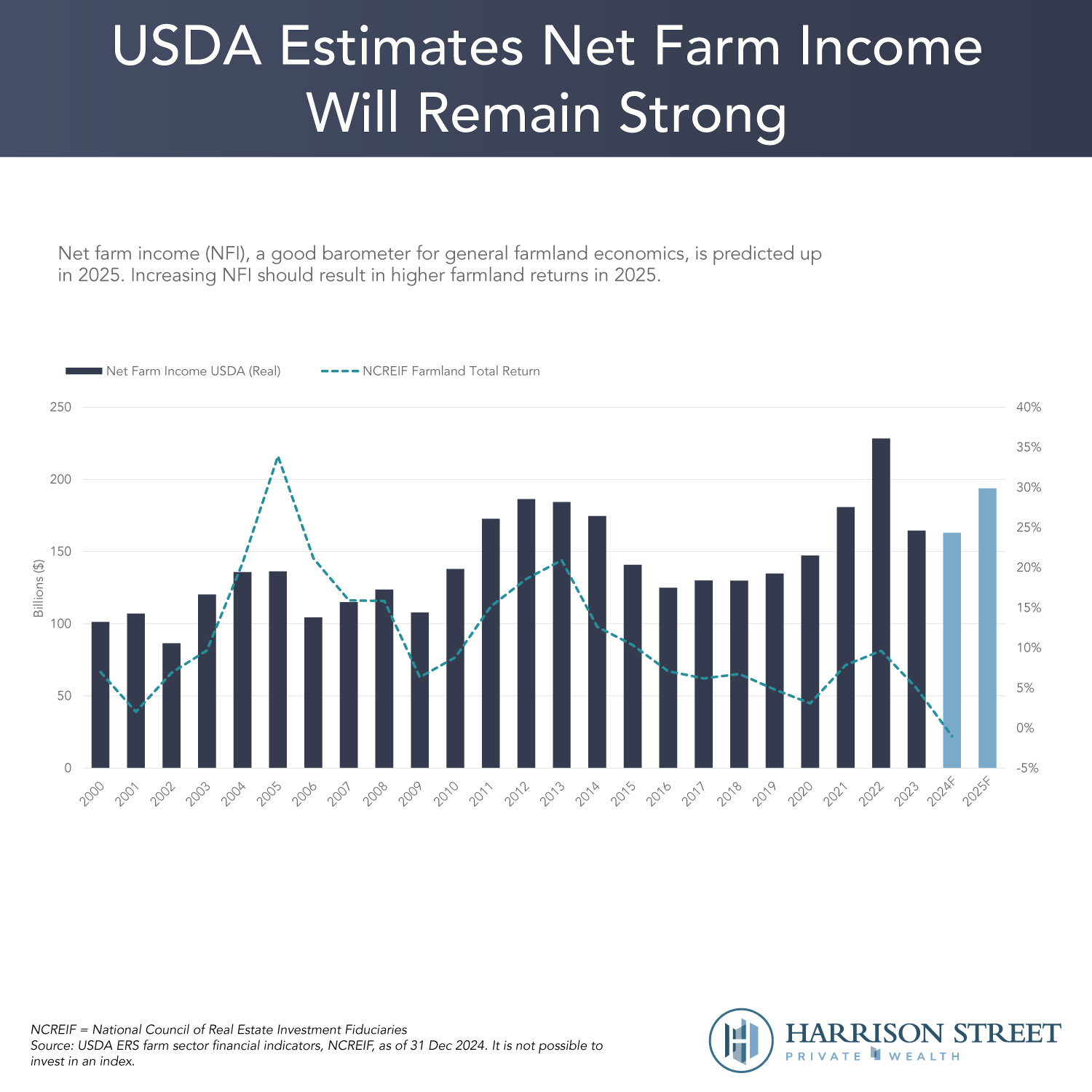 • The USDA estimates net farm income (NFI) will rise this year, signaling improved fundamentals across the agricultural sector